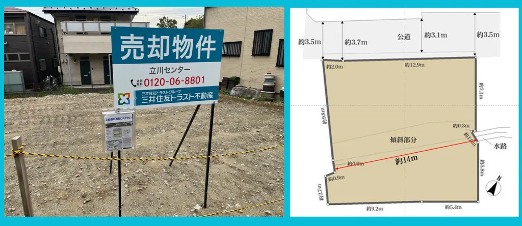 実測値でいくと、法地面積は約24㎡となります。また段差の高さは、最大値で1.5mとなっています。